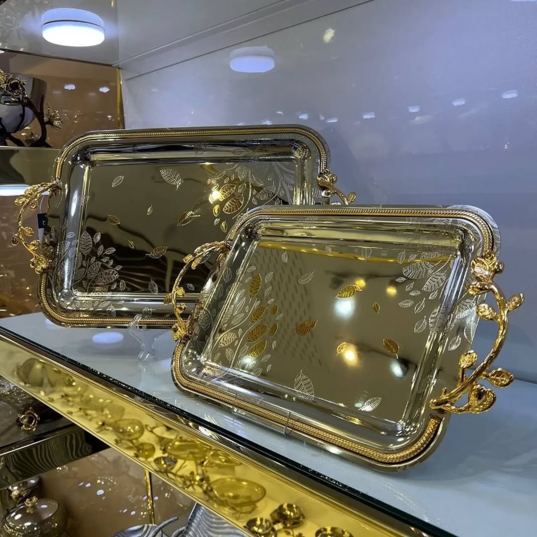 میز عسلی تنه درختی ۳ تکه آلومینیومی (آبکاری فورتیک طلایی نقرهای)