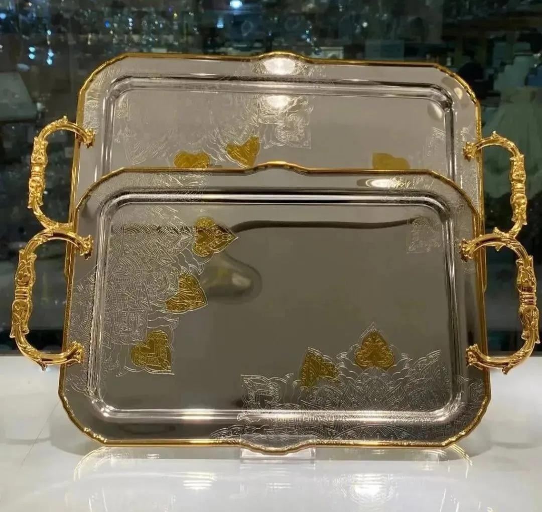 ✨سینی تمام استیل کد ۶۹۰۹ ابعاد : کوچک : ۳۶*۲۶ بزرگ : ۴۳*۳۱ جنس : استیل آهنربا نگیر ،ضخامت ورق ۱ میل وارداتی