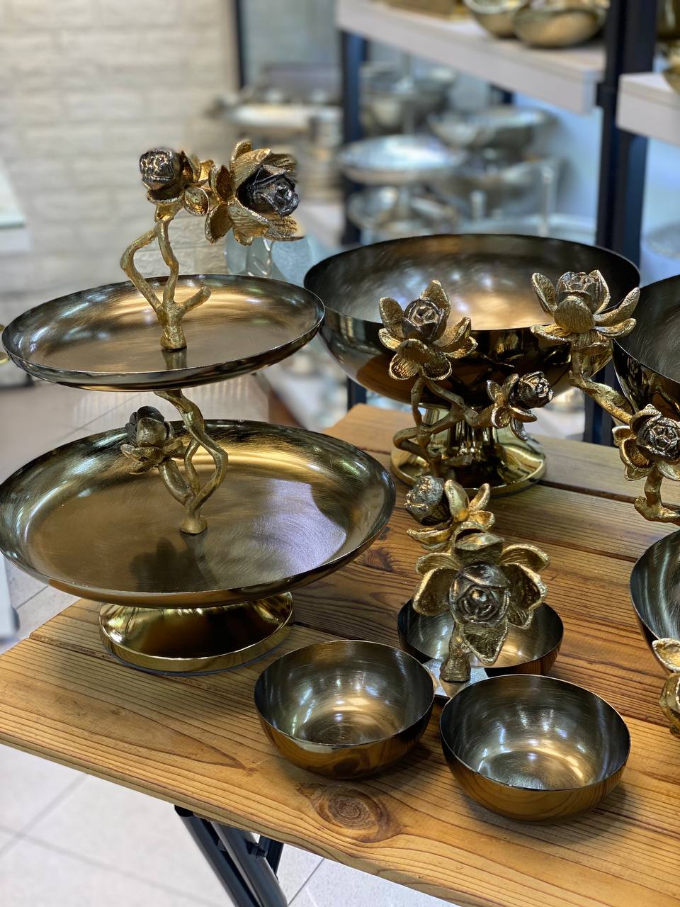 ست زیبای نیلوفر پنج آیتم میوه خوری بزرگ آجیل خوری بزرگ شکلات خوری اردو خوری سه پیاله شیرینی خوری دو طبقه کیفیت درجه یک